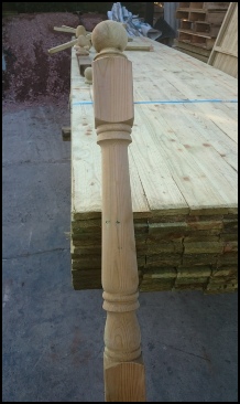 Turned Newel posts: 4" (90mm) x 5' (1.5mt) long.