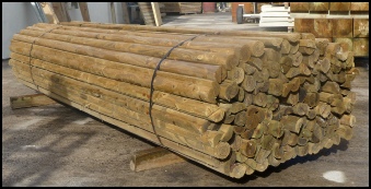 Round posts are imported and pressure treated green.